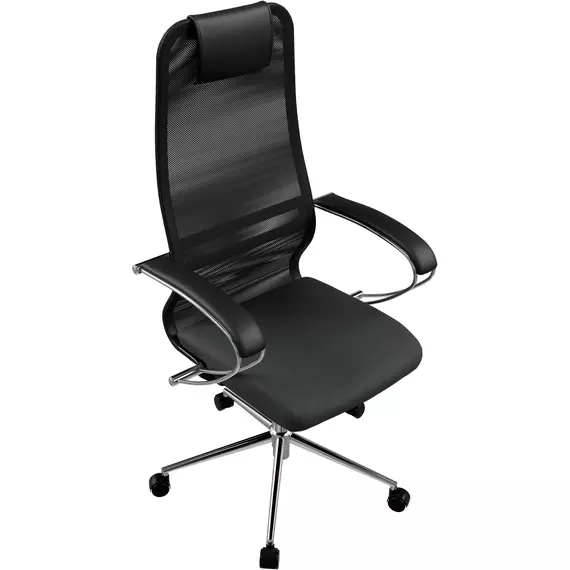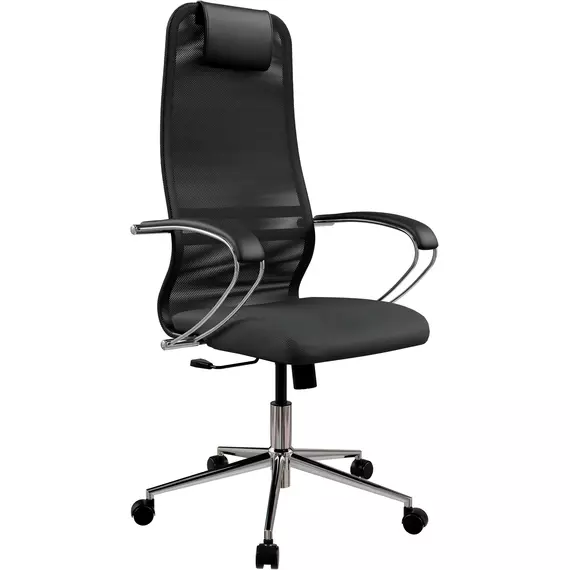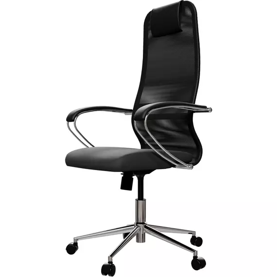 Кресло Метта SU-B-8 черный сиденье черный сетка/ткань с подголов. крестов. сталь хром [ZDA.16.1.2A2]