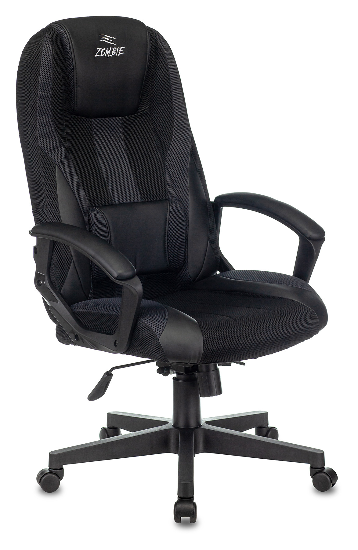 Кресло игровое Zombie 9 BLACK черный/серый ткань/эко.кожа крестов. пластик