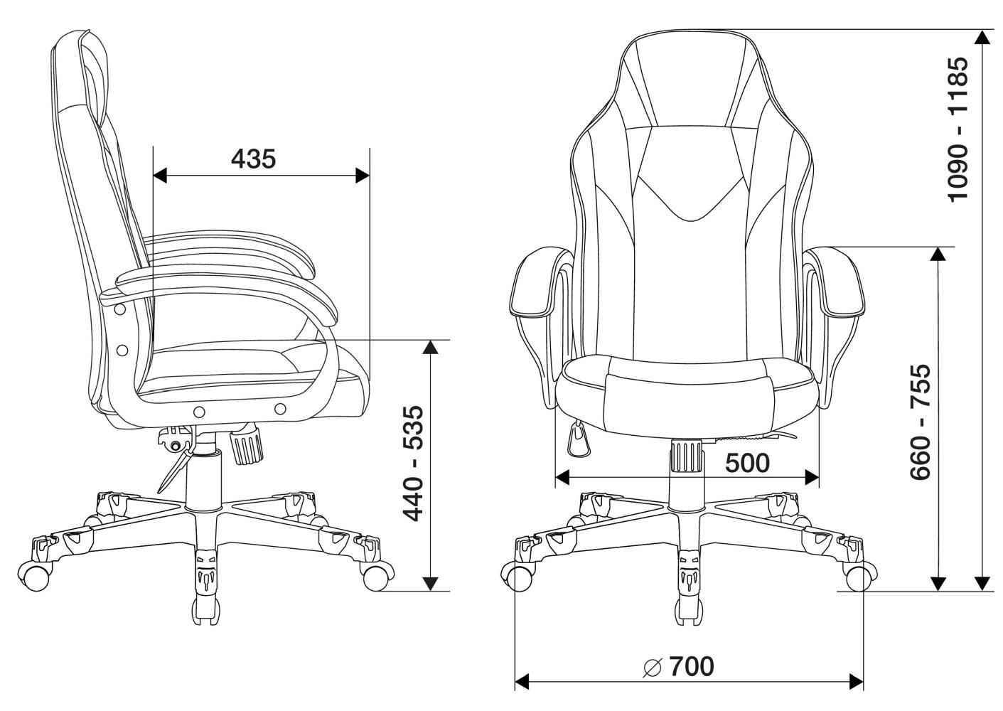 | Высота кресла / стула MIN | 1090 мм |
