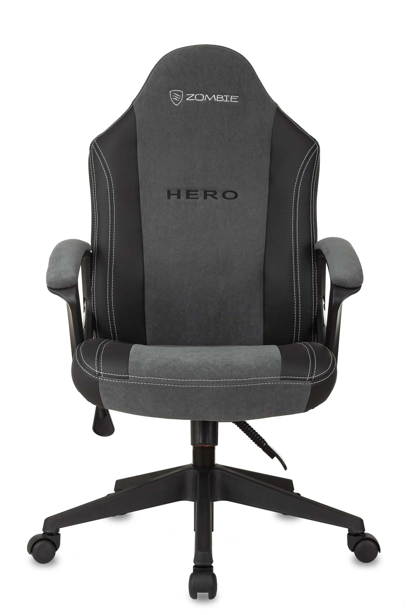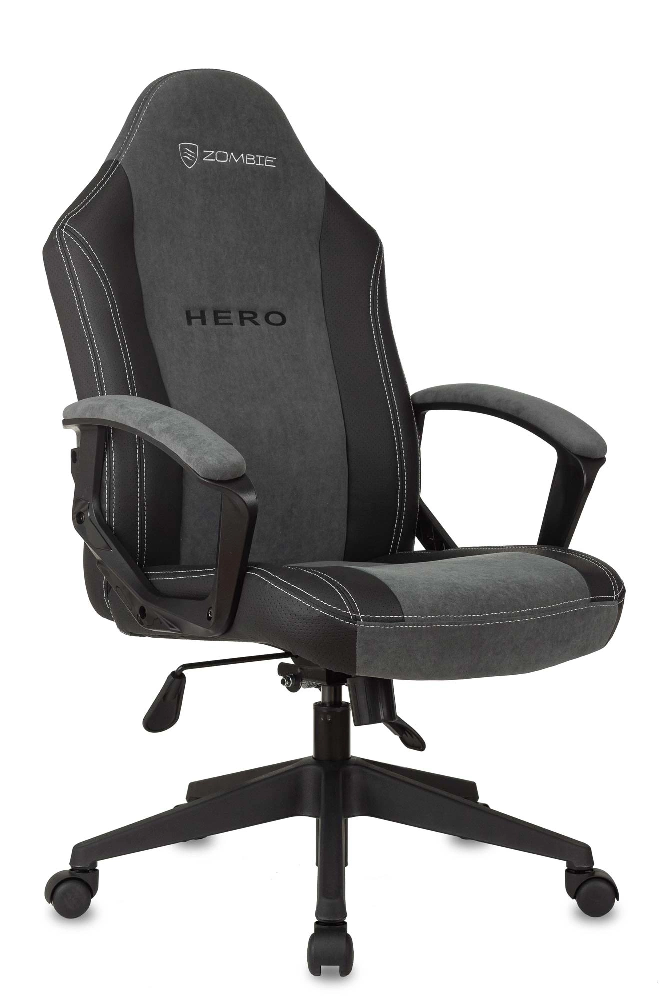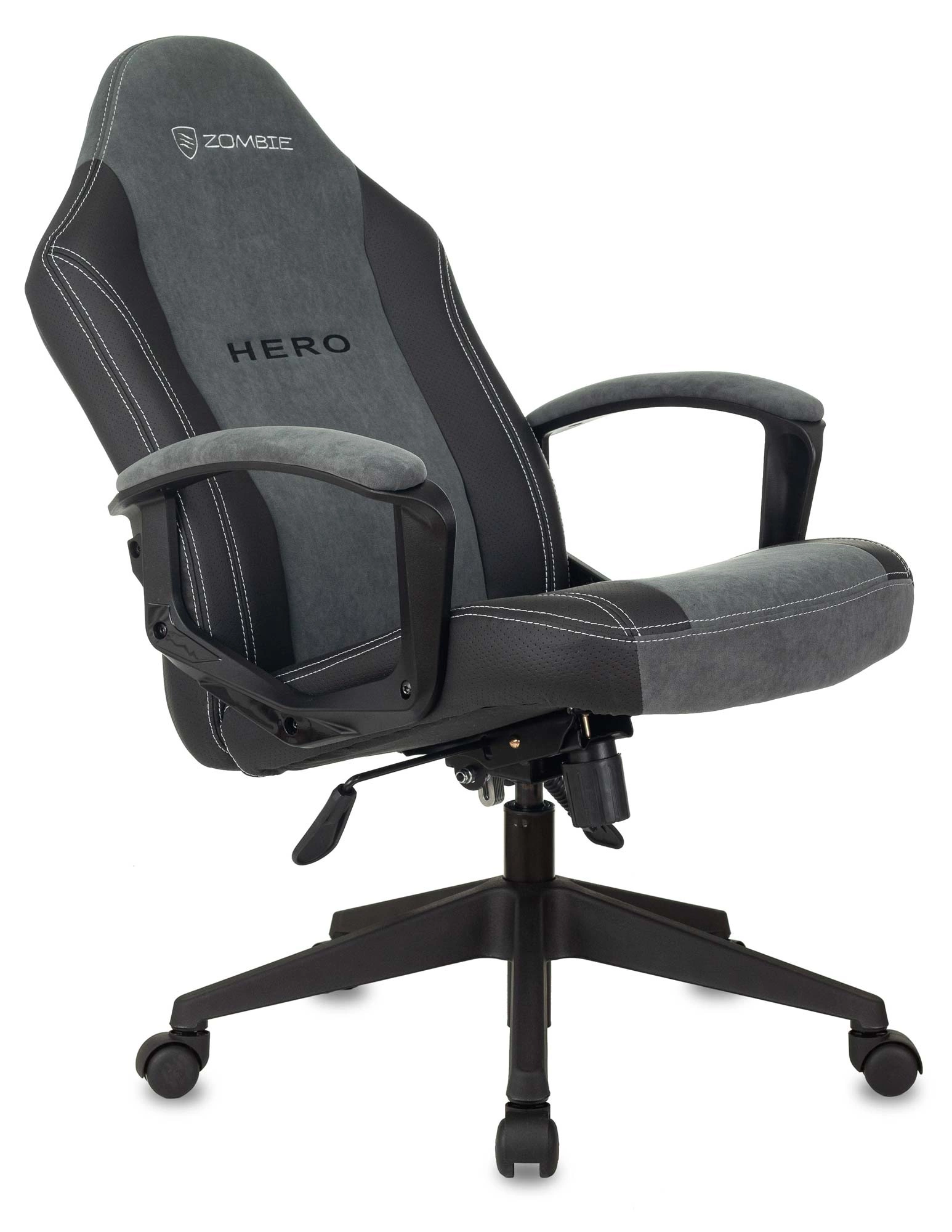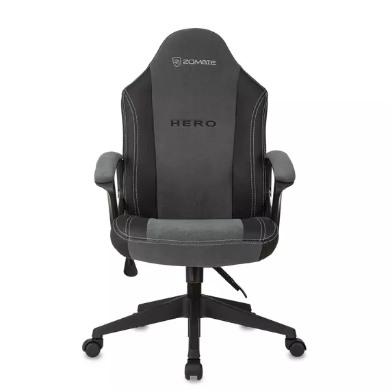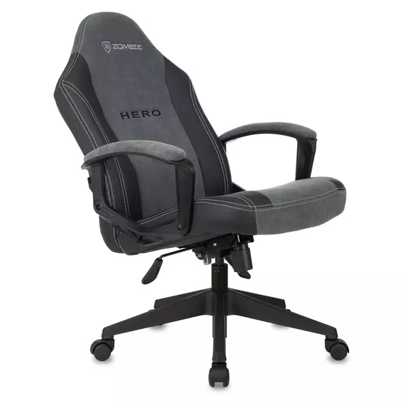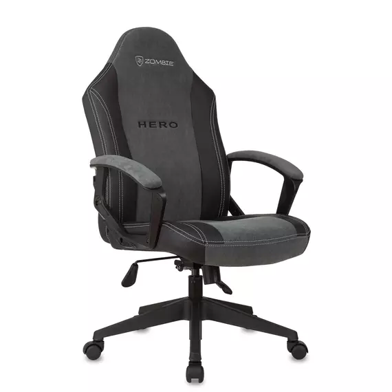 Кресло игровое Zombie Hero серый ткань/эко.кожа крестов. пластик