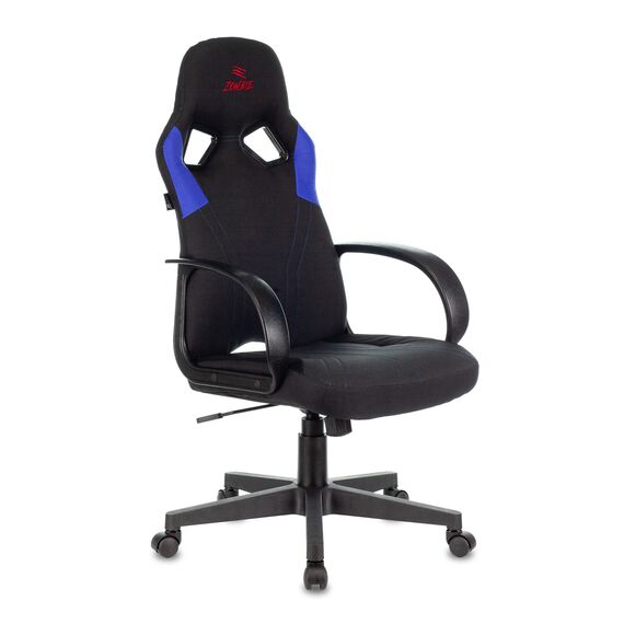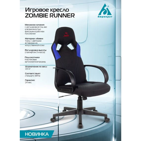Кресло игровое Zombie RUNNER BLUE черный/синий ткань/эко.кожа крестов. пластик