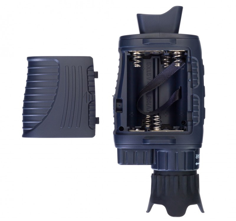 - Все необходимое для полевых наблюдений. Монокуляр удобен в использовании в полевых условиях, так как корпус выполнен в эргономичном формате, а кнопки ложатся точно под пальцы. Есть защита от влаги и пыли. Питание осуществляется от стандартных батареек, одного заряда которых хватает на период от 4 до 10 часов непрерывной работы (время работы зависит от того, как интенсивно использовать ИК-подсветку). Настольный штатив, включенный в комплект, упрощает проведение длительных наблюдений и видеозапись, так как позволяет получать более стабильную картинку