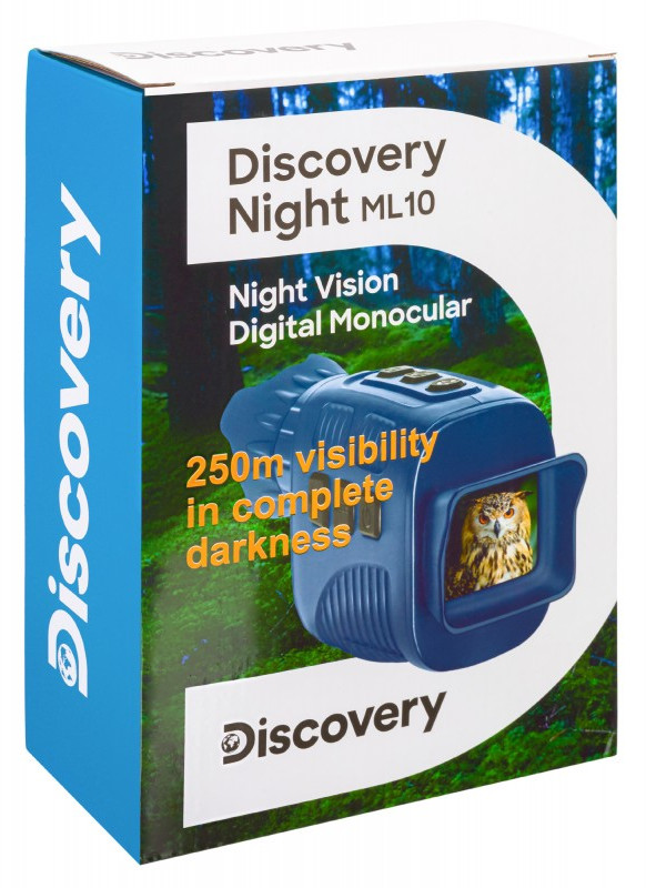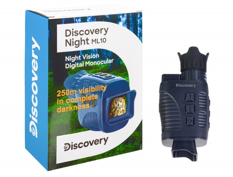 - Перед вами монокуляр ночного видения Discovery Night ML10 с цифровым и оптическим увеличением и встроенным рекордером. Прибор можно применять не только ночью, но и днем – как обычный монокуляр. Монокуляр будет незаменим в походе и на ночной охоте, также его можно использовать для спортивного ориентирования и тактических игр в полевых условиях. Пригодится он и для выполнения профессиональных задач по охране территорий