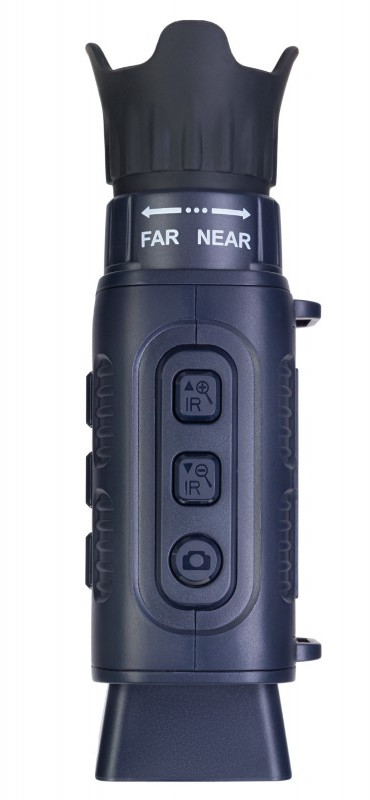 - Расстояние видимости в полной темноте – 250 метров. В монокуляре используется оптика из стекла с просветлением на основе диоксида кремния, поэтому передаваемая картинка четкая, ясная и детализированная при любой освещенности. Днем прибор способен фокусироваться на объектах, удаленных на 3 метра и более, а ночью показывать область на расстоянии в 250 метров. Для наблюдений в полной темноте рекомендуется использовать встроенную ИК-подсветку. Она повышает читаемость картинки, особенно если устанавливать максимальную яркость. Всего доступно 7 уровней яркости осветителя. Подсветка удобна тем, что невидима для глаз, поэтому, используя ее, можно оставаться незамеченным для людей и животных