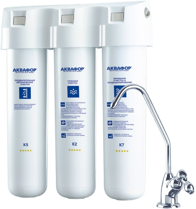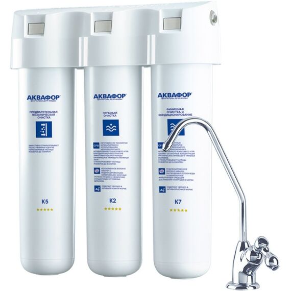 | Фильтры / картириджы в комплекте | Модуль K5 - Предварительная очистка воды.Модуль К2 - Глубокая доочистка воды.Модуль К7 - Финишная сорбционная очистка воды. |