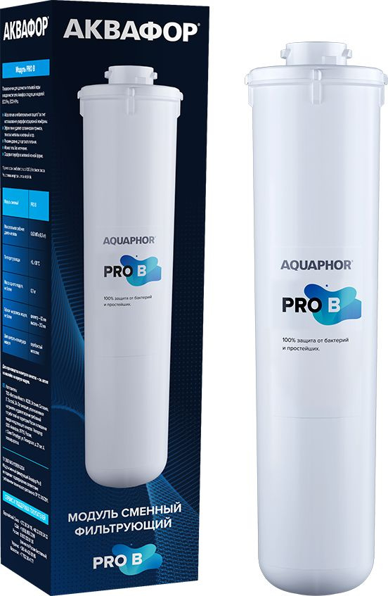 Модуль Pro B с ультрафильтрационной мембраной обеспечивает механическое удаление бактерий и цист без применения химических бактерицидов. Поры мембраны в 5 раз меньше любого микроорганизма, поэтому вода не требует кипячения и безопасна для всех членов семьи.