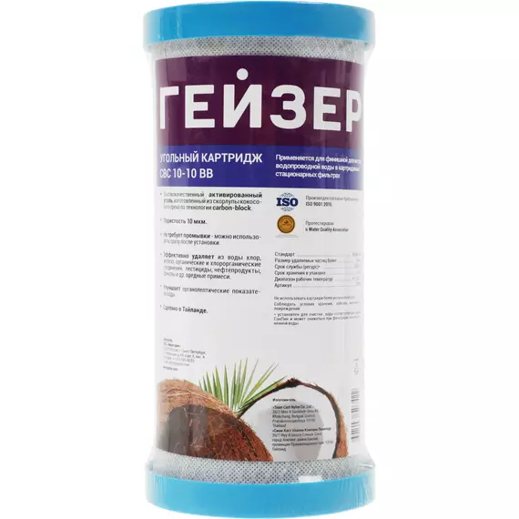 Изготовлен из высококачественного кокосового активированного угля по технологии карбон-блок, что обеспечивает глубокую очистку воды от хлора, органических и хлорорганических соединений. Устраняет неприятные запахи и улучшает вкус воды. Сертифицирован американской ассоциацией NSF.
