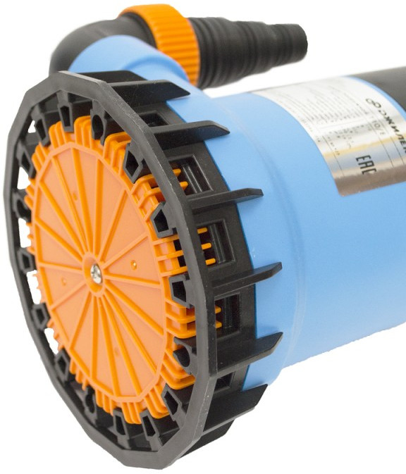 - Насосная часть состоит из: центробежного рабочего колеса, корпуса насоса, основания, внизу которого расположены окна для забора воды