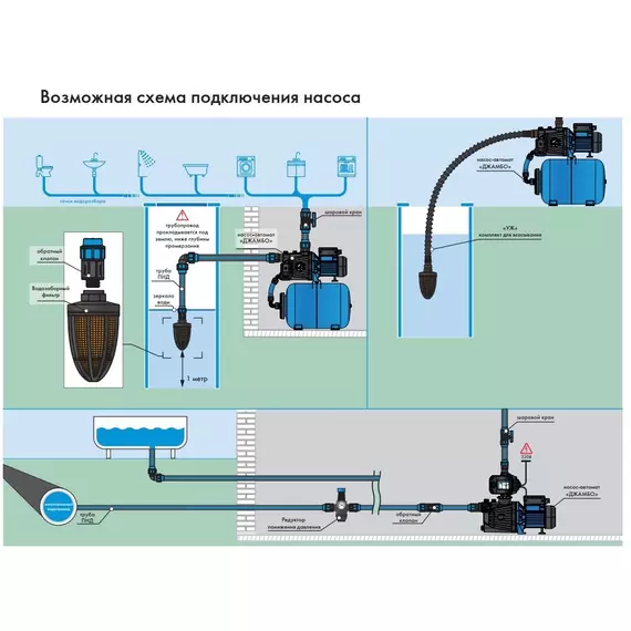 | Особенности | Поверхностные насосы-автоматы «ДЖАМБО» Комфорт |