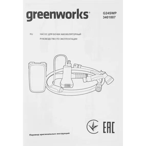 Насос бочечный Greenworks G24SWP 100Вт, 1800л/час [3401007]