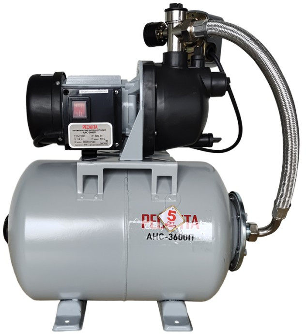 Автономная насосная станция РЕСАНТА АНС-3600П 800 Вт, напор 40 м, 60 л/мин, гидроаккумулятор 24 л, глубина всасывания 9 м, 1"