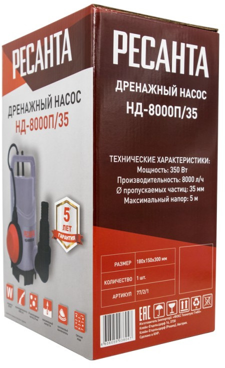 Дренажный насос РЕСАНТА НД-8000П/35
