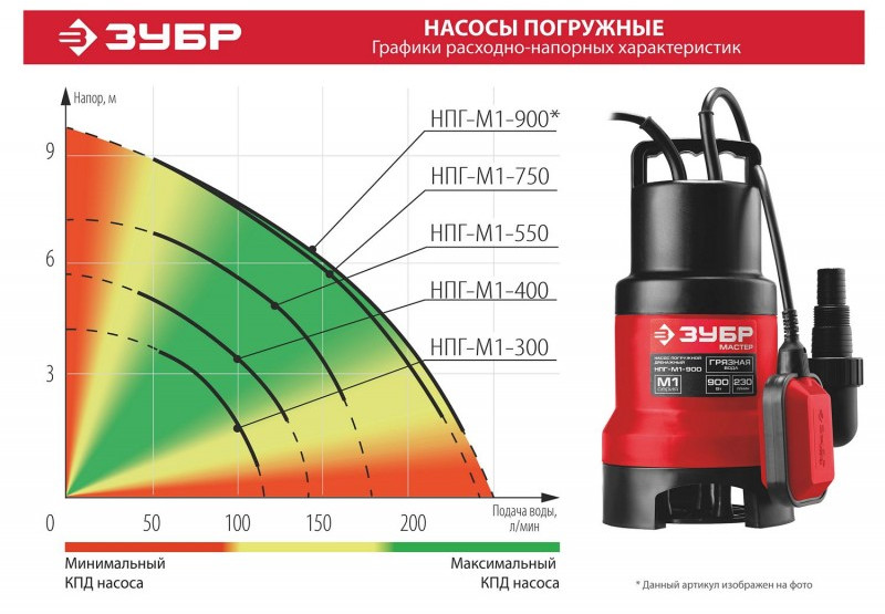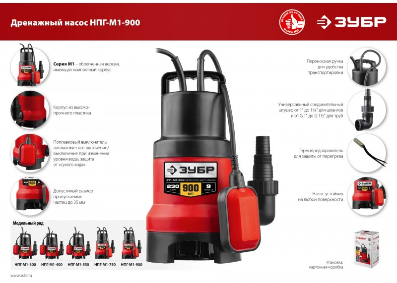 Дренажный насос для грязной воды Зубр НПГ-М1-900 900 Вт