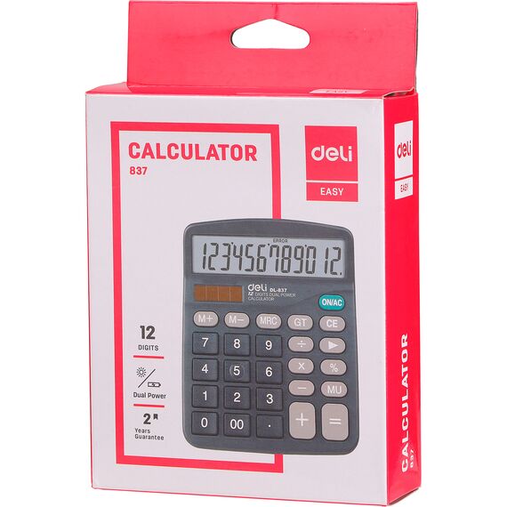 Калькулятор Deli E837 настольный черный 12-разр.