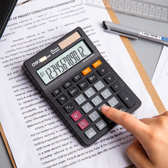 Калькулятор настольный Deli EM01320 черный 12-разр.