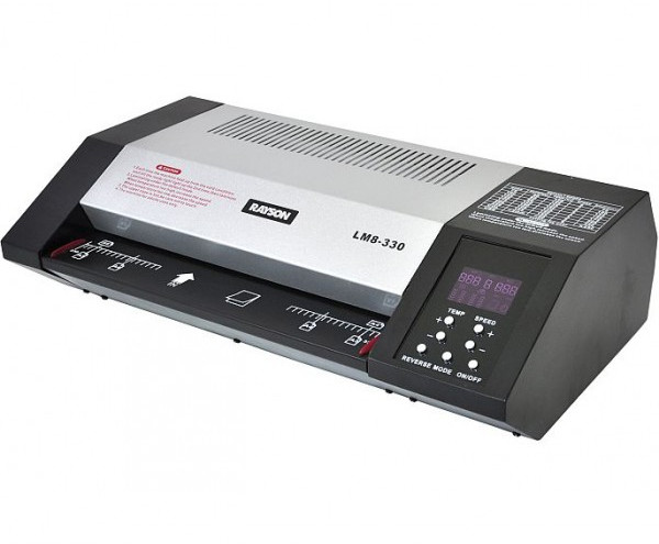 Предназначен для организаций с большим объемом работ. Профессиональный ламинатор формата А3 с 8-ю валами, 6-ть из которых горячие. Микропроцессорная система управления, цифровой дисплей и кнопочная панель управления. Работает со всеми толщинами пленок, качественно производит фольгирование. Отличается большой мощностью нагрева, скоростью и предустановленными настройками для разных толщин пленок (что несомненно удобно), а 6-ть горячих валов обеспечат качественное ламинирование. Обратите внимание, время непрерывной работы до 4-х часов.