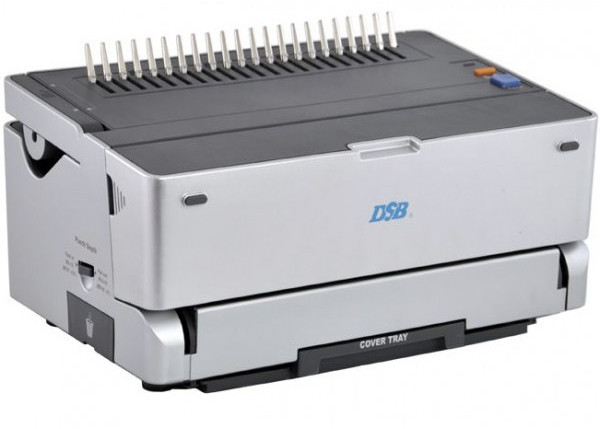 Брошюратор на пластиковую пружину от компании DSB. Препелетчик CB-200E с электрическим приводом механизма перфорации бумаги, с помощью которого можно переплести до 500 листов. Отличная модель для офиса: в переплетчике есть контейнер для пружинок и лоток для обложек, компактный дизайн типа «трансформер». Для компаний со средним объемом работ.