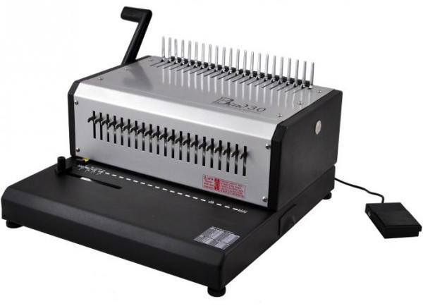 Переплетная машина на пластиковую пружину от компании Rayson. Мощный брошюратор с электрическим приводом механизма перфорации бумаги и напольной педалью перфорации, с помощью которой можно переплести до 500 листов. E-BIND 30 часто покупают типографии и офисы со средним и большим объемом работ.