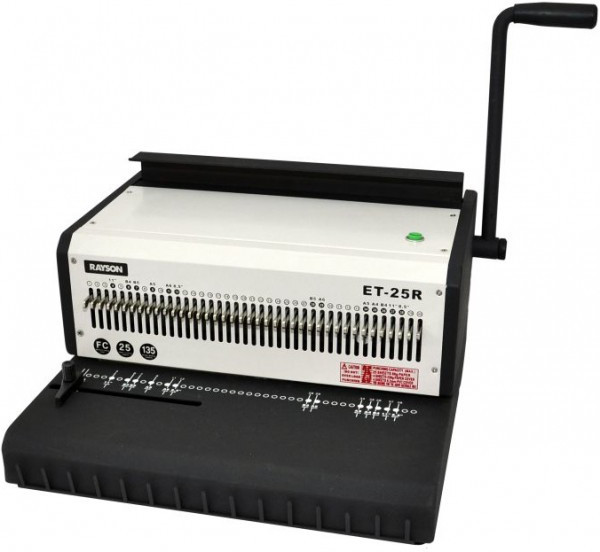 Мощная электрическая машина для перфорации на металлическую пружину от фирмы Rayson с возможностью отключения ножей с помощью которой можно переплести до 120 листов бумаги. Управление перфорацией ведётся с кнопки на корпусе или с удобной ножной педали. Литера «R» говорит о том, что машина пробивает круглые отверстия. ET-25R подойдет для компаний, организаций и типографий со средним и большим объемом работ.