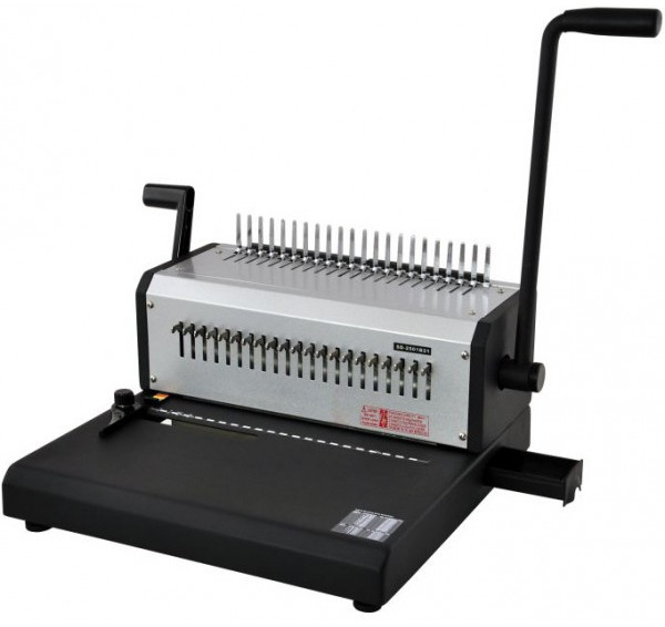 Надежная модель брошюратора с удлиненной станиной (для устойчивости) и двумя рукояткими для одновременной перфорации и брошюровки, которая может переплести до 500 листов бумаги. Отлично подходит для компаний и типографий со средним и большим объемом работ.