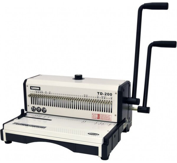 Переплетная машина на металлическую пружину с функцией отключения ножей перфорации. Удобная и надежная модель брошюратора, с помощью которой можно переплести до 120 листов, оснащена ручкой для перфорации отверстий в бумаге и отдельной ручкой для сжатия пружины. Машинка пробивает квадратные отверстия. TD-200 отличается современным дизайном и возможностью выполнения неограниченной длины переплета благодаря фиксатору сохранения шага пробиваемых отверстий. TD-200 подойдет для компаний, организаций и типографий со средним и большим объемом работ.
