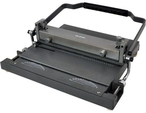 Это удобная и надежная модель брошюратора с цельнометаллическим корпусом, с помощью которой можно переплести до 280 листов. Это стало возможным благодаря двум рядам ножей с разным шагом «2:1» и «3:1». TD-2740 пробивает круглые отверстия и подойдет для компаний, организаций и типографий со средним и большим объемом работ.