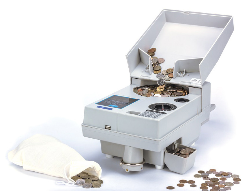 - Особенности: Наличие кармана для отбракованных монет (другая валюта, деформированные и т. п.) Автоматический реверс для предотвращения заторов. Автоматическая остановка при опустошении загрузочного бункера.