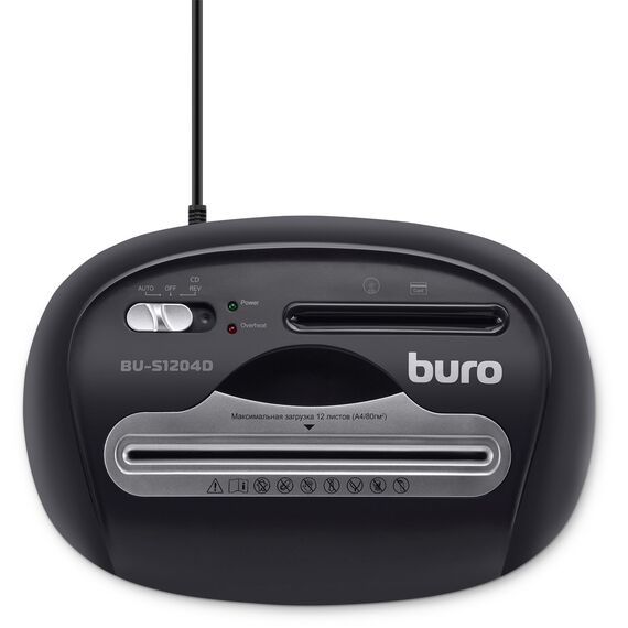 Шредер BURO BU-S1204D Office (секр.P-4) фрагменты 12лист. 21лтр. пл.карты CD