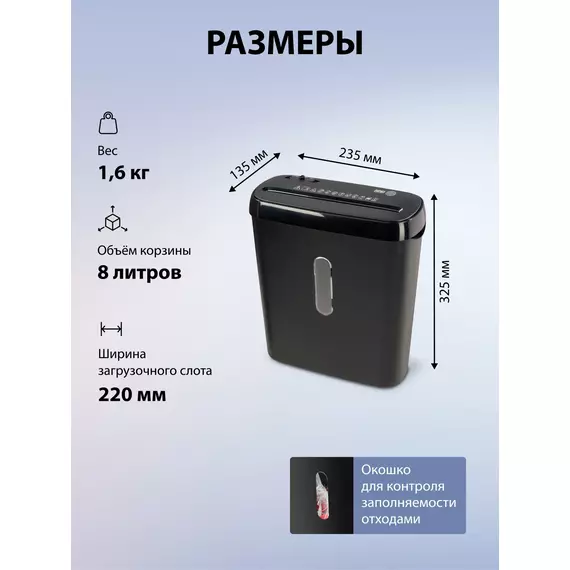 Шредер Cactus CS-SH-A1 секр.Р-2 ленты 6.лист. 8лтр.