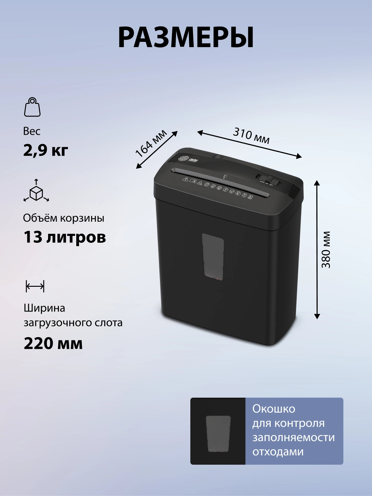 | Емкость корзины | 13 л |