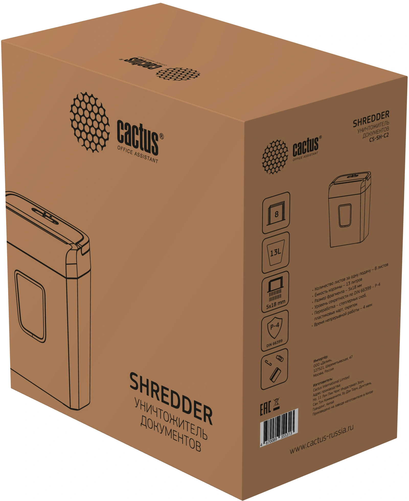 Шредер Cactus CS-SH-C2 черный (секр.P-4) фрагменты 8лист, 13лтр, скрепки, скобы, пл.карты