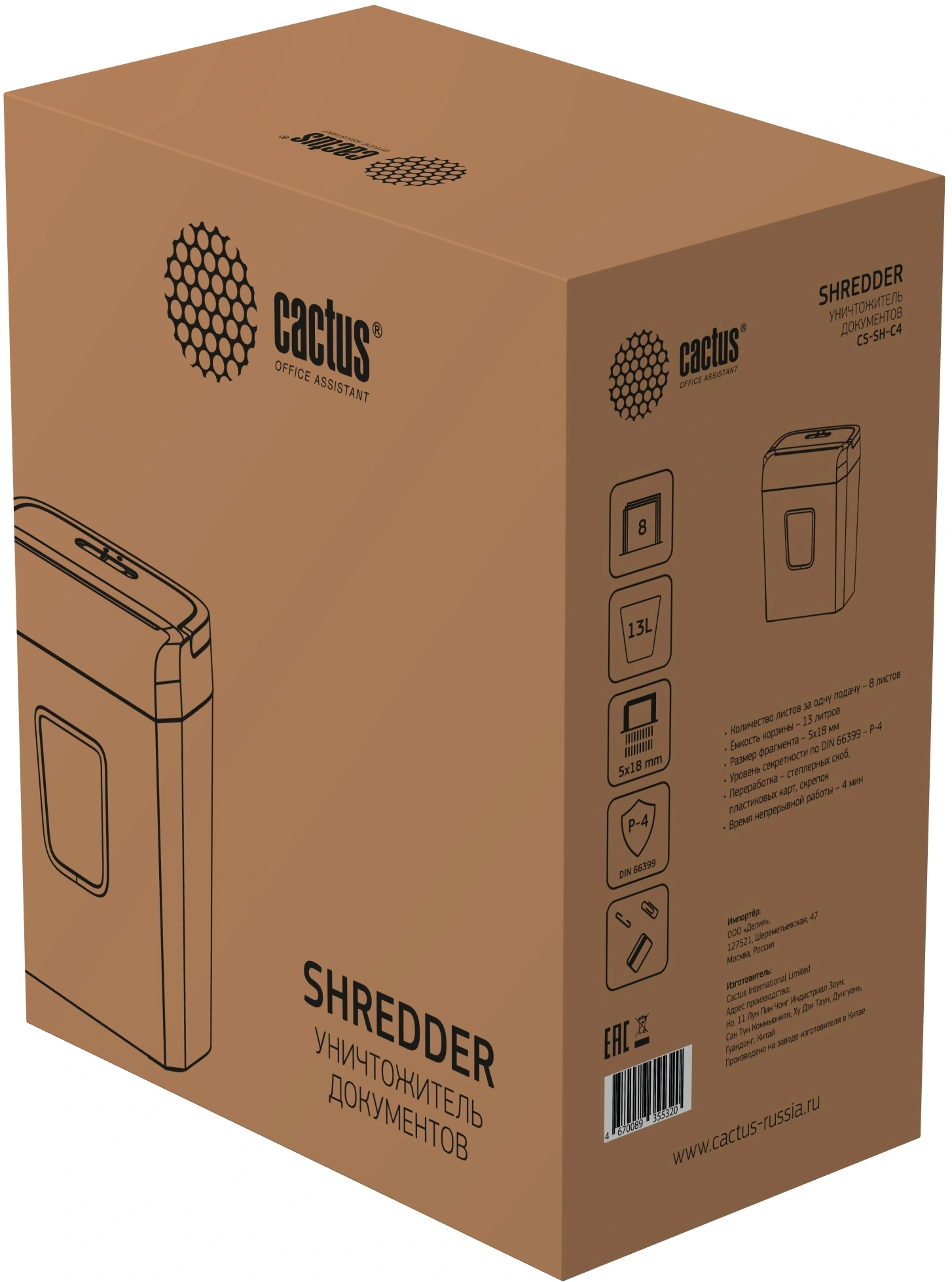 Шредер Cactus CS-SH-C4 белый секр.P-4 фрагменты 8лист 13лтр скрепки скобы пл.карты