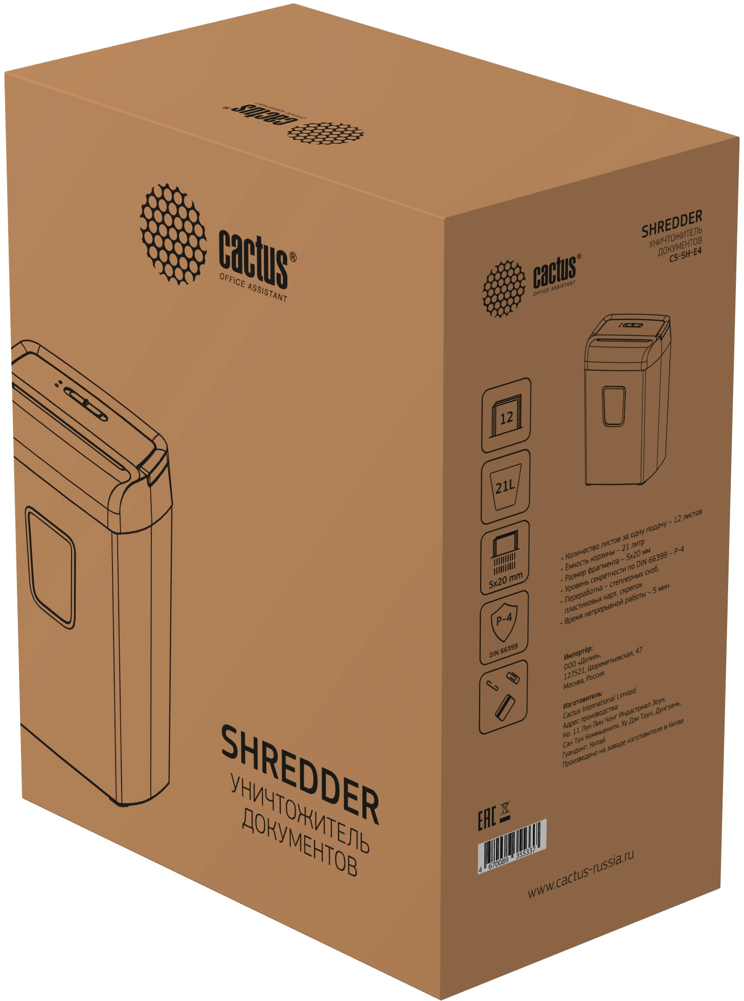 Шредер Cactus CS-SH-E4 секр.P-4 фрагменты 12лист 21лтр скрепки скобы пл.карты