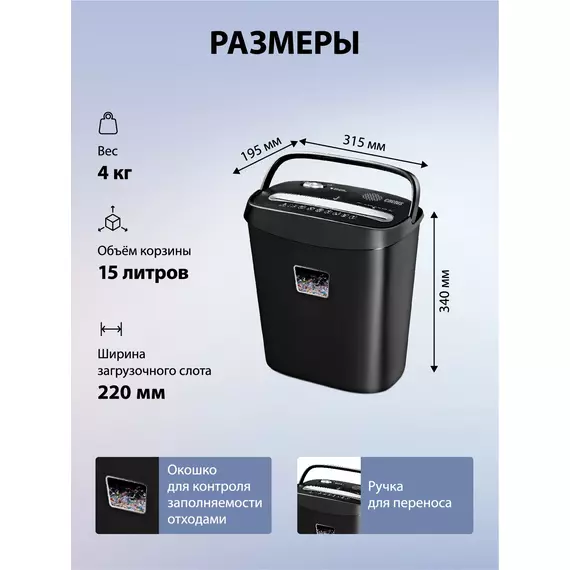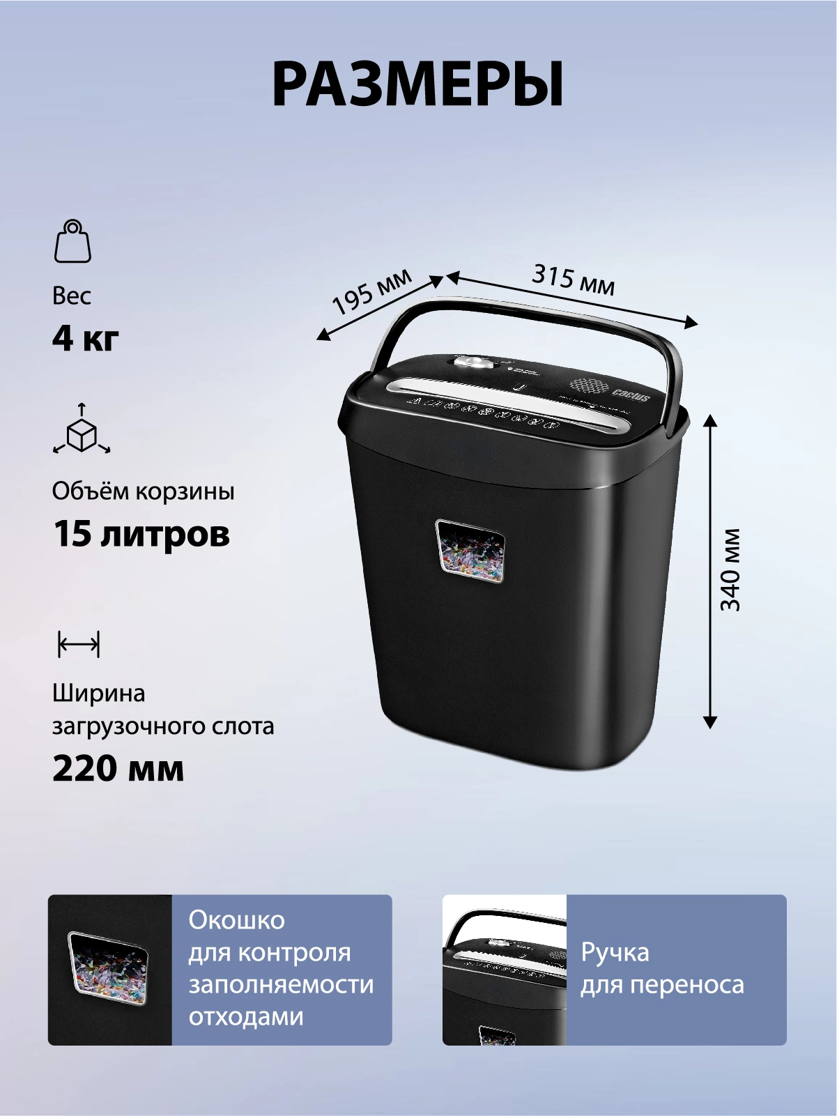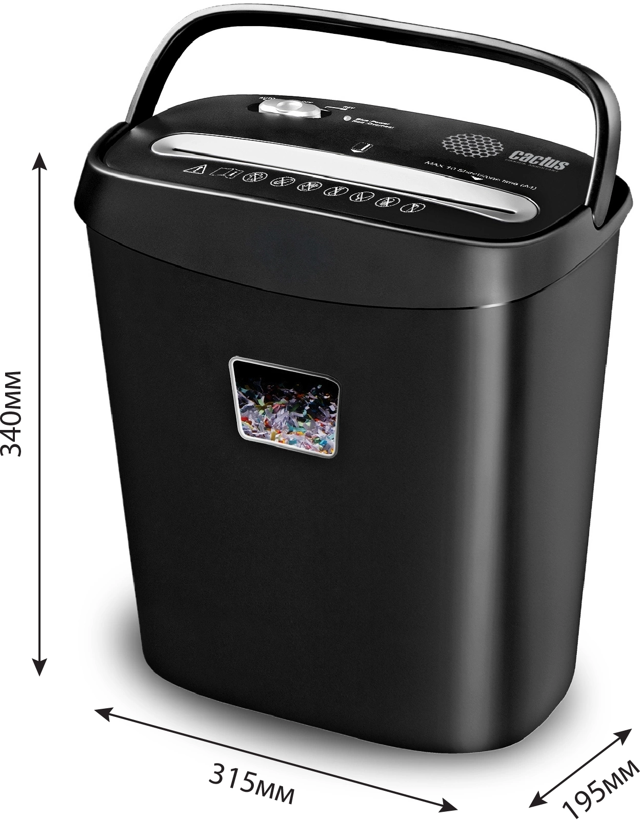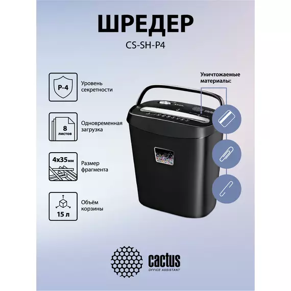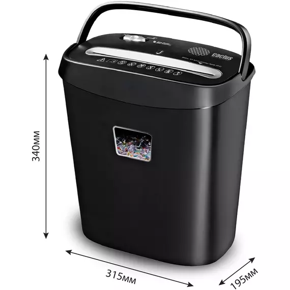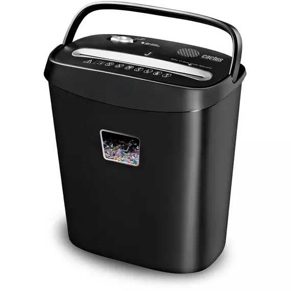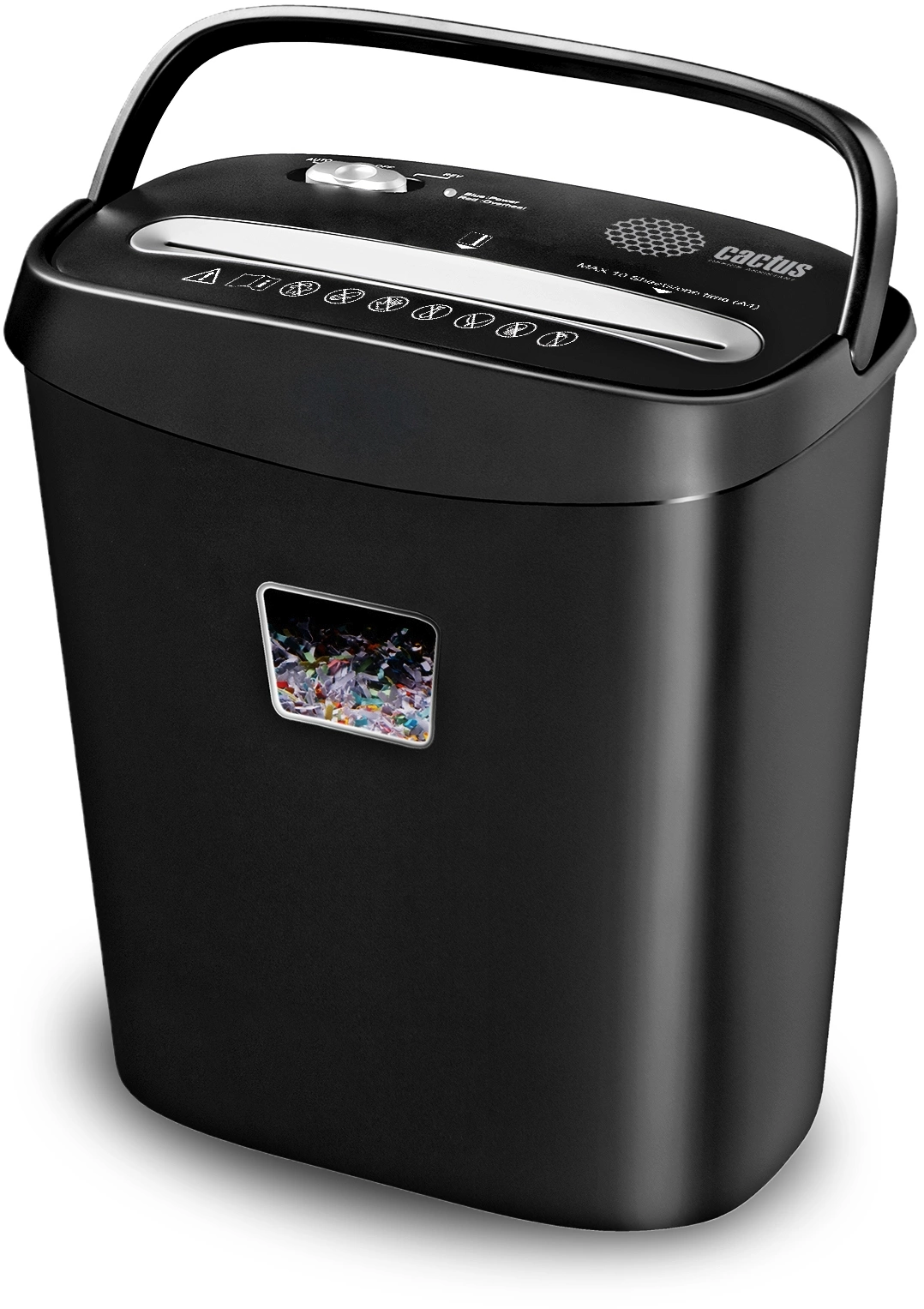 Шредер Cactus CS-SH-P4 черный (секр.P-4) фрагменты 8лист. 15лтр. скрепки скобы пл.карты