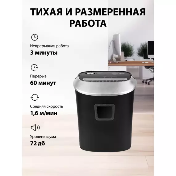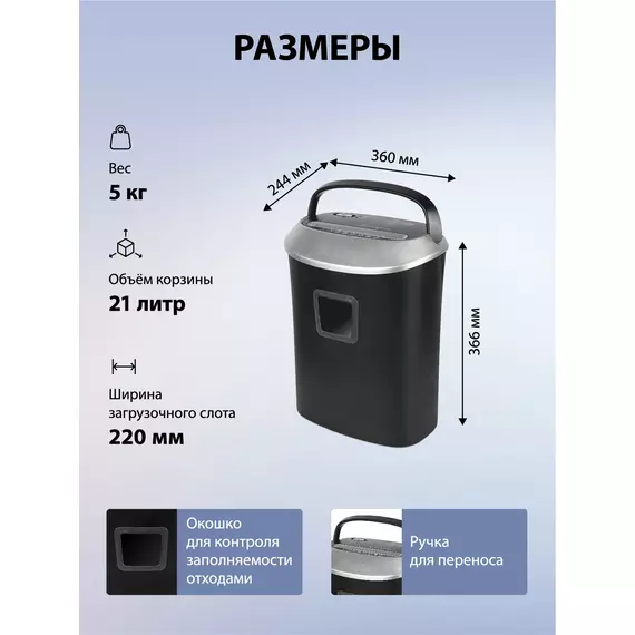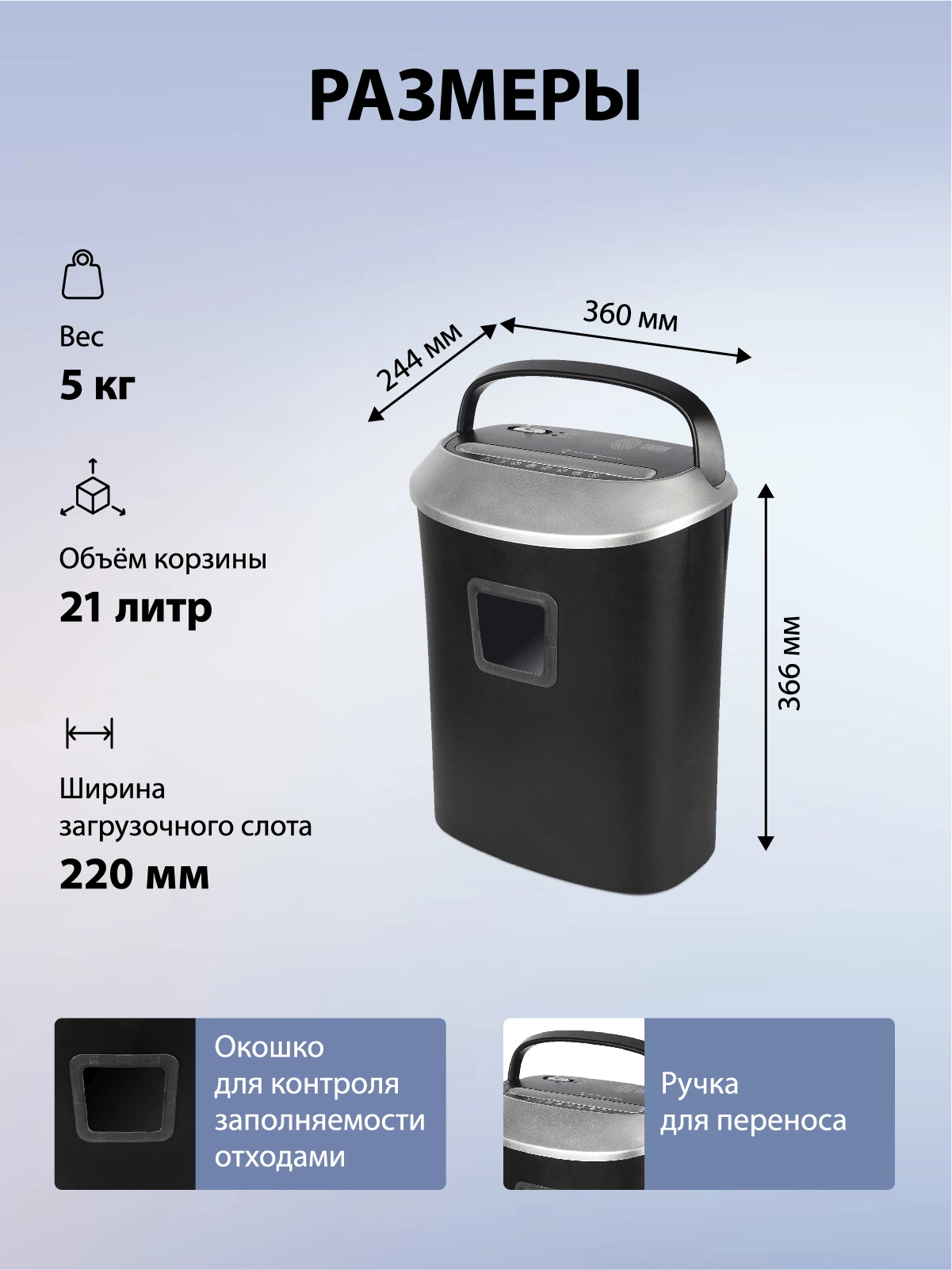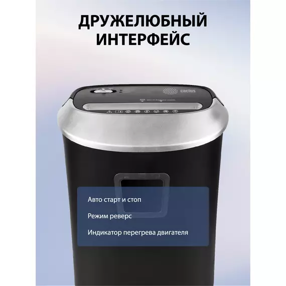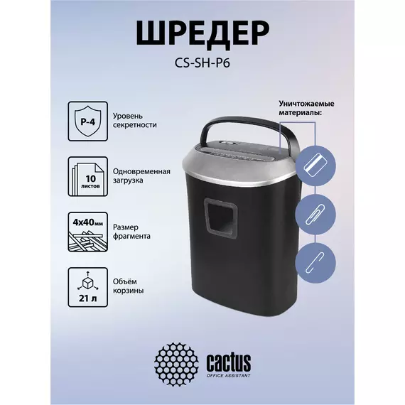 Шредер Cactus CS-SH-P6 черный/серый (секр.P-4) фрагменты 10лист. 21лтр. скрепки скобы пл.карты