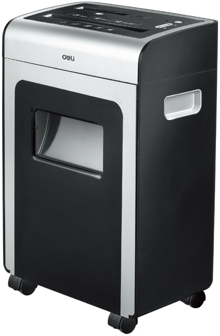 Шредер Deli 9915 черный (секр.P-4) фрагменты 10лист. 21лтр. скрепки скобы пл.карты CD
