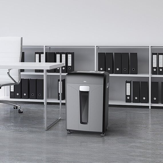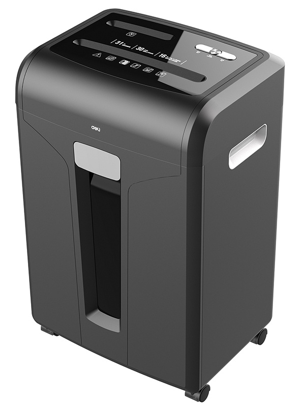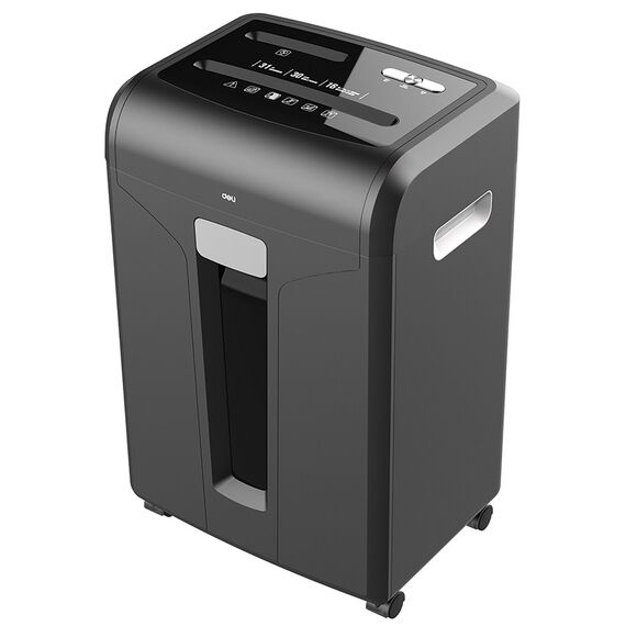 Шредер Deli E14400 черный (секр.P-4) фрагменты 16лист. 31лтр. скрепки скобы пл.карты CD