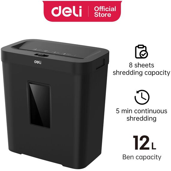 Шредер Deli ET021 черный с автоподачей (секр.P-4) фрагменты 8лист. 12лтр.