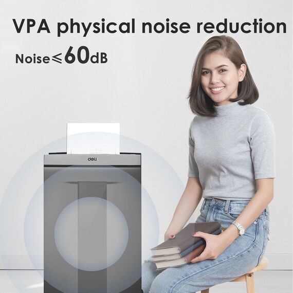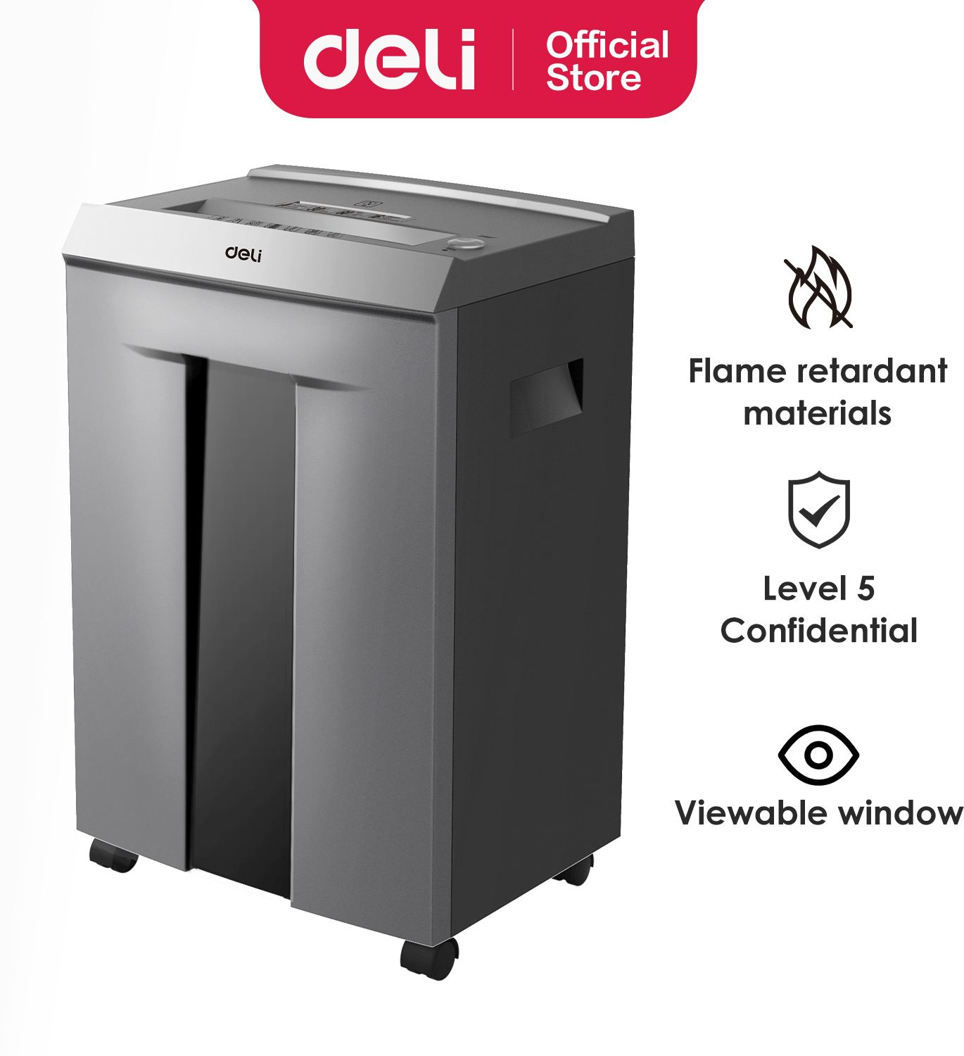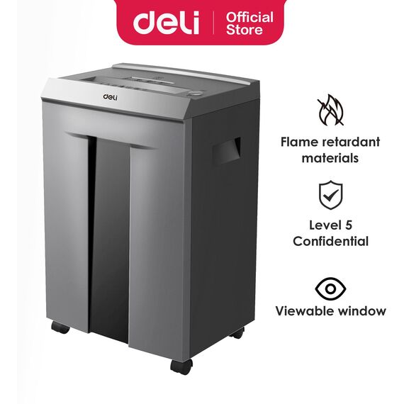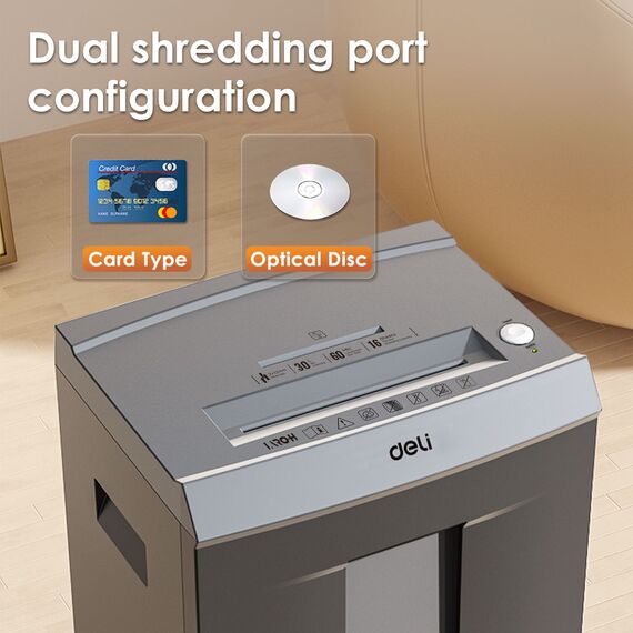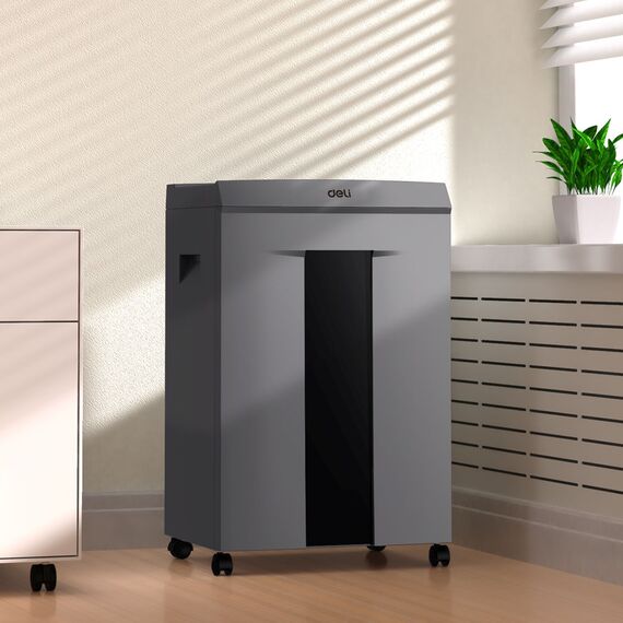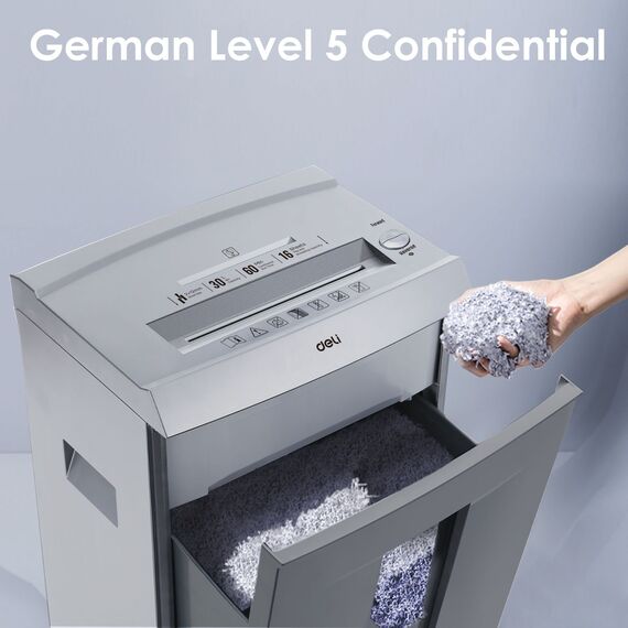 Шредер Deli ET096 серый с автоподачей (секр.P-5) фрагменты 16лист. 30лтр. скрепки скобы пл.карты CD
