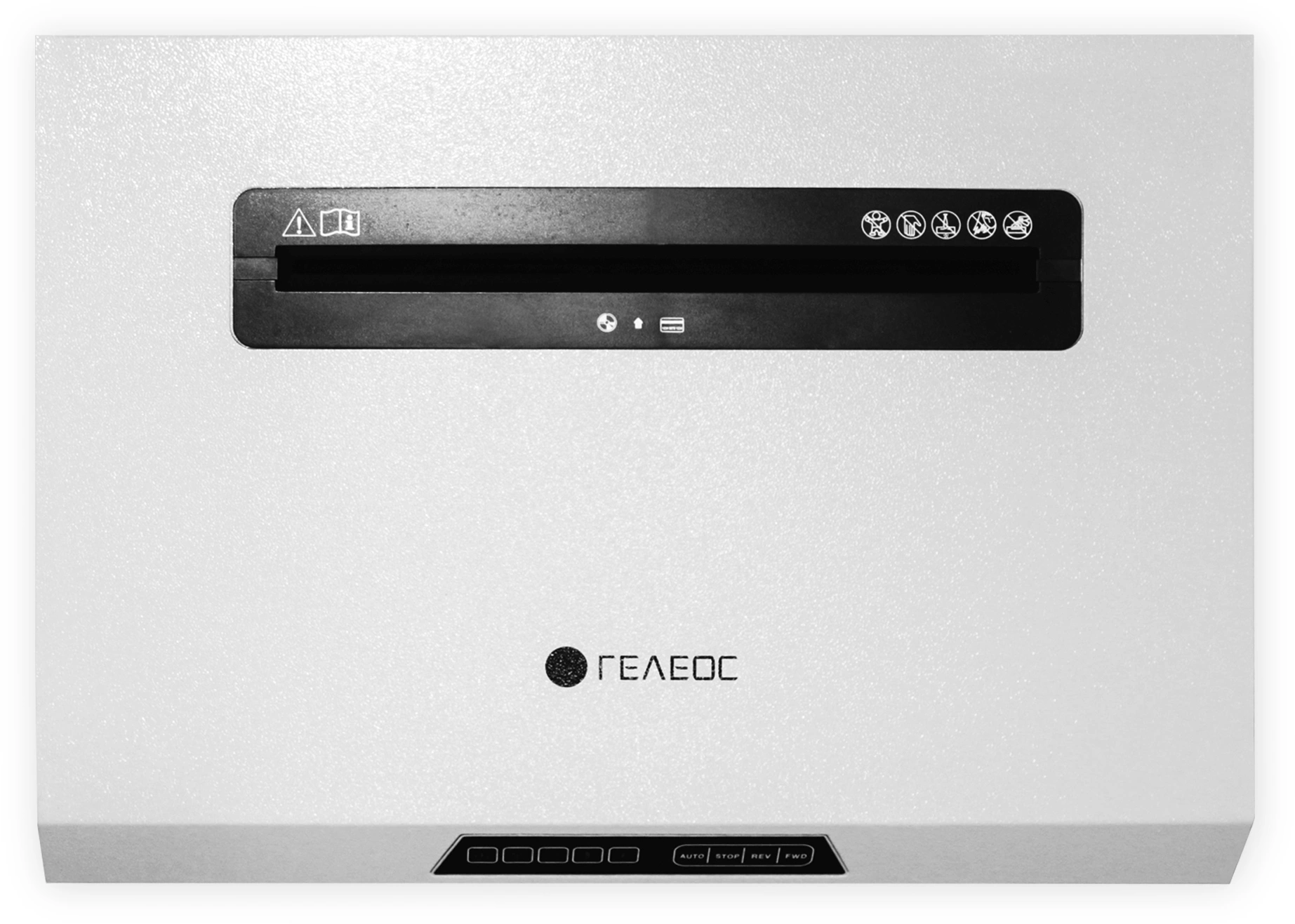 Шредер Гелеос УО90-5 белый/черный (секр.P-5) перекрестный 21лист. 90лтр. скрепки скобы пл.карты CD