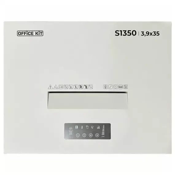 Шредер Office Kit S1350 3,9x35 белый (секр.P-4) фрагменты 35лист. 135лтр. скрепки скобы пл.карты CD [OK39351350]