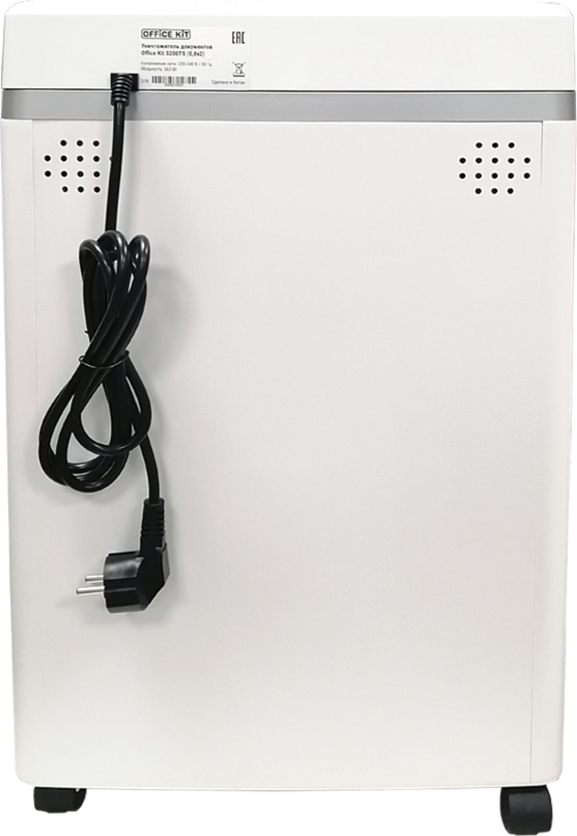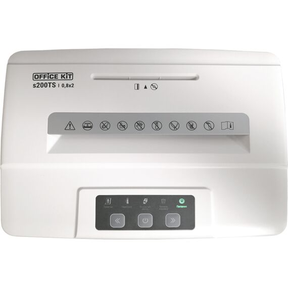 Шредер Office Kit S200TS 0,8x2 белый (секр.P-7) фрагменты 6лист. 25лтр. скобы пл.карты CD [OK0802S200]