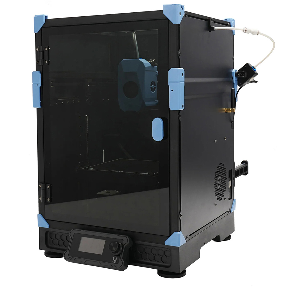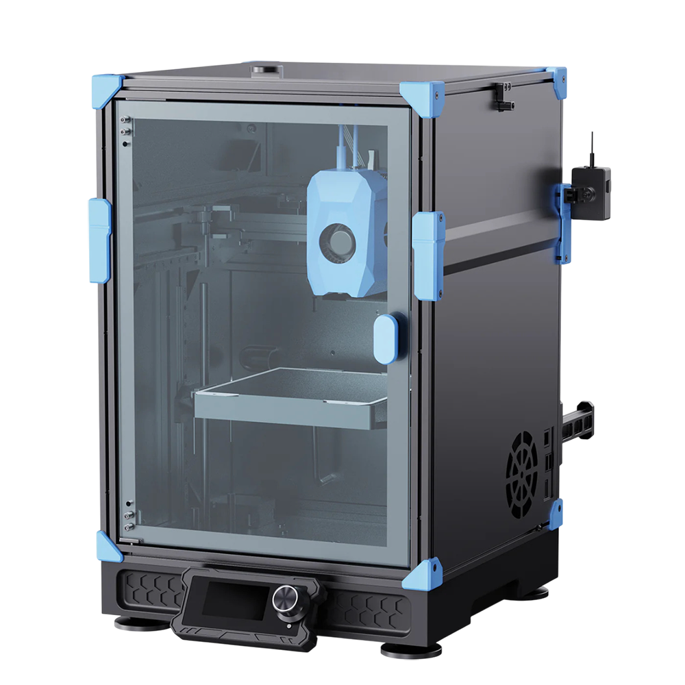 Модель оснащена двусторонней текстурированной рабочей пластиной PEI, обеспечивающей надежное сцепление материала и предотвращающей деформацию изделий. Конструкция CoreXY гарантирует высокую стабильность и равномерность движений каретки, что значительно повышает качество готовых моделей. Корпус оснащен закрывающими панелями, защищающими изделие от пыли и обеспечивая оптимальные условия для процесса печати.