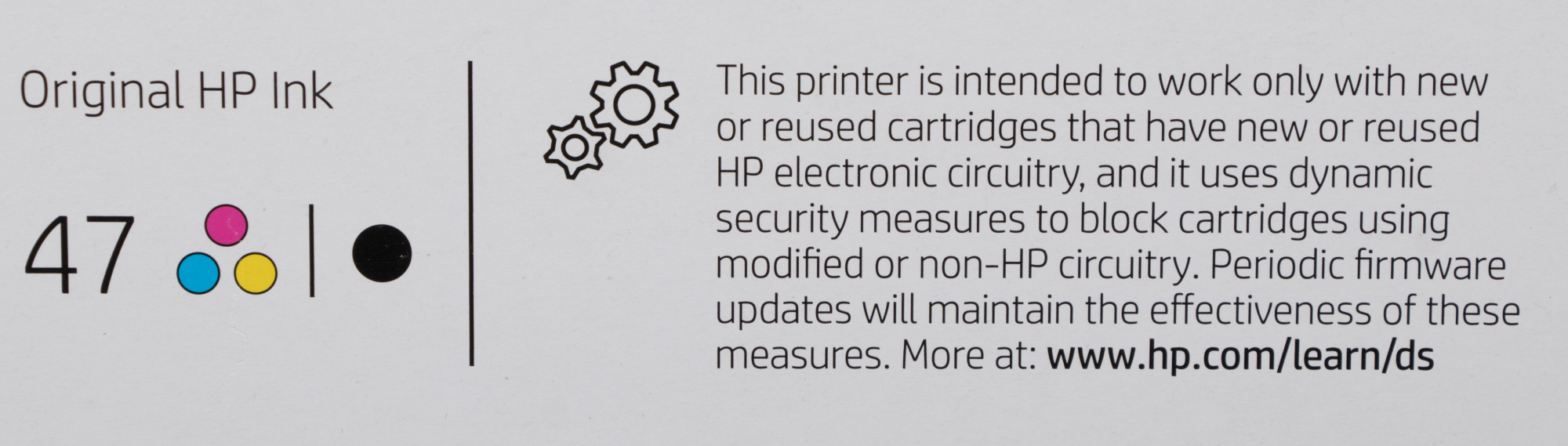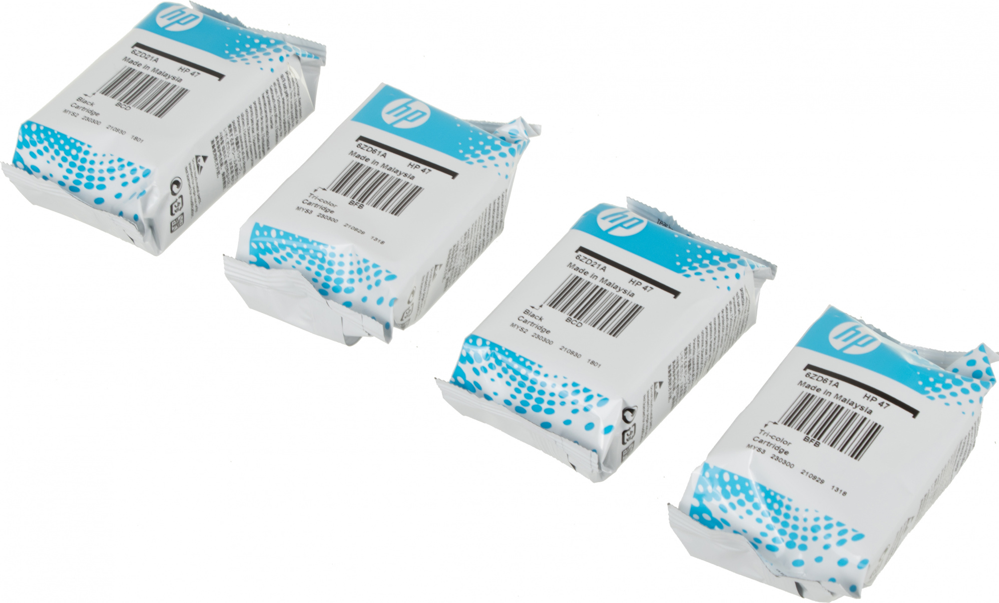 | Расходные материалы | картридж HP 47 черный 6ZD21AE ~1300 страниц, картридж HP 47 трехцветный 6ZD61AE ~700 страниц |