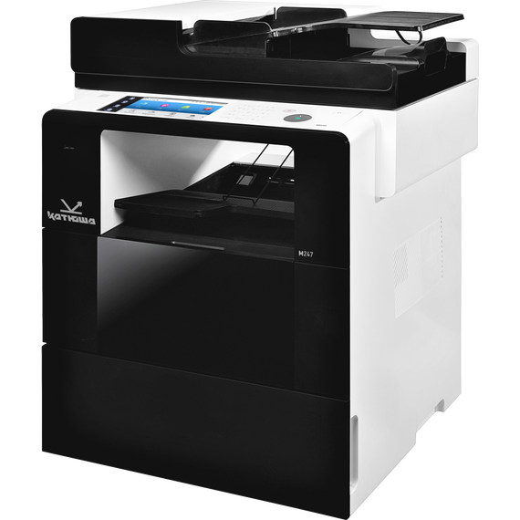 МФУ Катюша M247e принтер/копир/сканер/факс, 47 стр/мин А4+ Ч/Б печать, 1200 dpi, сканер цвет А4-А3 до 60 стр/мин. CPU 1 ГГц, 1 ГБ RAM, Ethernet, USB, USB-host, Wi-Fi, ADF 50 листов, 6" панель управления + клавиатура