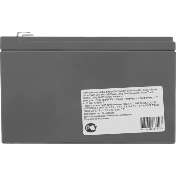 Аккумулятор CSB GPL 1272 - батарея общего применения со сроком службы 8 лет (10-12 лет при 20 °С по классификации Eurobat) в буферном режиме или более 260 циклов заряда-разряда в циклическом режиме при 100% разряде.