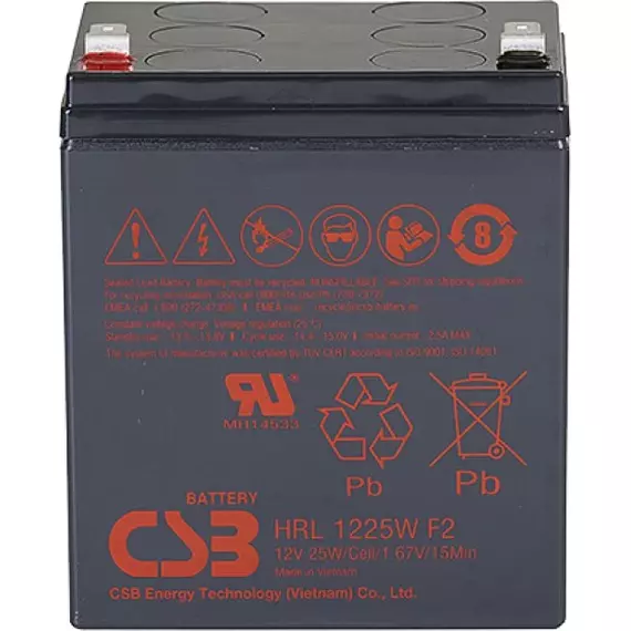 Аккумулятор CSB HRL 1225W F2 FR с высокой энергоемкостью. Особенная кристаллическая решетка электродов позволила увеличить на 20% отдаваемую мощность по сравнению с батареями других серий. Она разработана для эксплуатации в режиме высоких токов разряда при коротком времени разряда.