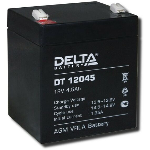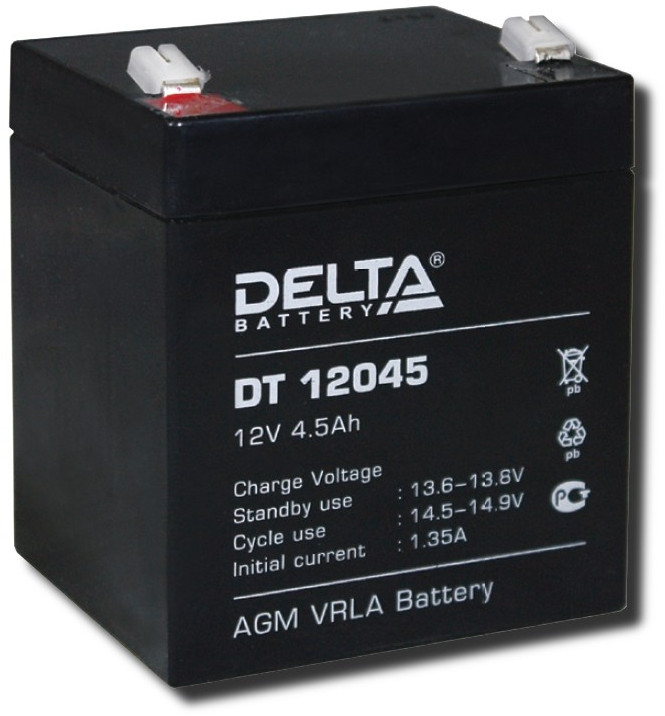 Аккумулятор Delta DT 12045 свинцово-кислотный, герметичный аккумулятор, емкость аккумулятора: 4.5 Ач