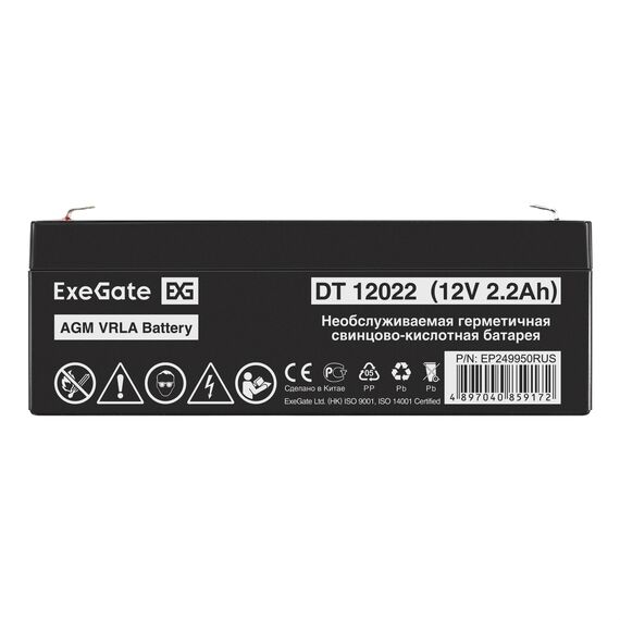 Аккумулятор Exegate DT 12022 12V, 2.2Ah, клеммы F1 [EP249950RUS]