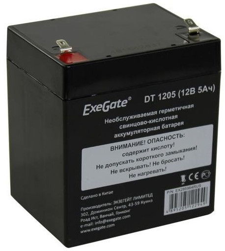 Аккумулятор Exegate DT 1205 12V, 5Ah, для слаботочных систем [EX285964RUS]
